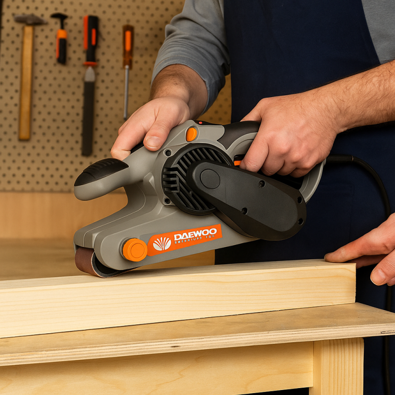 Daewoo DABS950 е моќен лентов шлајфер наменет за брзо и ефикасно брусење на дрвени, метални и пластични површини. Со мотор од 950W и работна површина од 76×533 мм, оваа алатка обезбедува стабилност, контрола и прецизност при рамен третман на површини. Идеален е за столари, мајстори и домашни работилници.