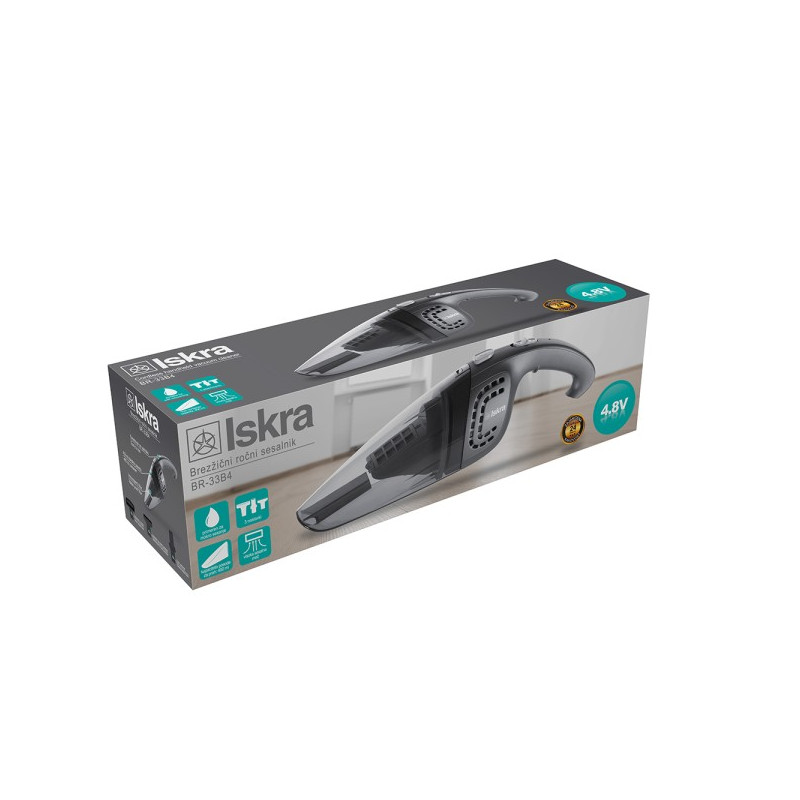 Карактеристики:4.8 Ni-MH 4×1300 mAh јачина на батеријаВисока усисна моќНепрекината работа 12-13 мин.Канистер со филтер што лесно се миеКапацитет на канистерот( 400ml за прашина и 40ml за течности)Индикатор за полнењеПолнач кој работи на 220 V ~ 50 Hz30 W јачина на моторЗа усисување на суво ѓубре и на течности3 додатоци за чистење на потешко достапни места (краток додаток, додаток со четка и додаток за течности)Максимален вакум: ≥1.5KpaБучност: 76dBНето тежина: 0,61kgБруто тежина: 0,925 kgДимензии на кутијата: 385mm (Д x 105mm (Ш) x 114mm (В)2 години гаранција