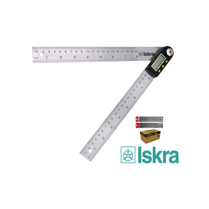 Дигитален агломер ИскраДолжина: 200ммЗа лесно мерење и пренос на агли од компонентиЛесен за читање на LCD дисплејМерење на ниво на горни и долни рабовиДолжина на мерки: 0-360 СтепениПрецизност: +- 0,03 степениПовторливост: 0.05 СтепениАлгомерот има функција (позиција) нула што овозможува хоризонтално и вертикално мерењеТаквото позиционирање дозволува мерење во секоја позицијаОбратно читањеБатерија 3V CR3032Стабилен и разноврсен мерачГаранција – 2 години