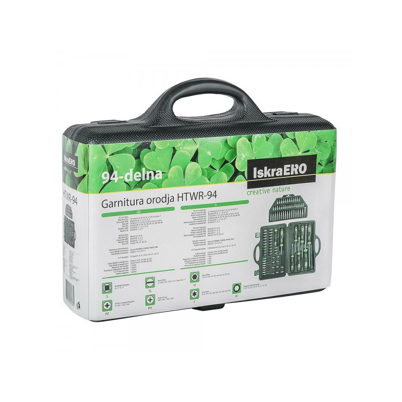 25 mm наставки: (50 парчиња)• Слот наставки (SL): (11 парчиња) 3, 4, 4, 4,5, 5, 5, 5,5, 6, 6, 6.5, 7• крст наставки (PH): (8 парчиња) 0, 0, 1, 1, 2, 2, 3, 3• Двојна (H): (10 парчиња) 1,5, 2, 2,5, 3, 3.5, 4, 4,5, 5, 5,5, 6• Торкс (Т): (10 парчиња) 8, 9, 10, 15, 20, 25, 27, 30, 35, 40• Позидрив (PZ): (7 парчиња) 0, 1, 1, 2, 2, 3, 3• Округли (S): (4 парчиња) 0, 1, 2, 3• 50 mm наставки: (16 парчиња)• Слот наставки(SL): (4pcs) 3, 4, 5, 6• крст наставки (PH): (4 парчиња) 0, 1, 2, 3• Позидрив(PZ): (4 парчиња) 0, 1, 2, 3• Torx (Т): (4 парчиња) 10, 15, 20, 25• Додатоци за прецизност: (8 парчиња)• Приклучок Крос-сечилото: (4 парчиња) PH0000, PH000, PH00, PH0• Рамно сечило: (4 парчиња) 1,2, 2, 2,5, 3• 1/2 “наставки: (10 парчиња) 4, 5, 6, 7, 8, 9, 10, 11, 12, 13• Меѓу-сечило штрафцигери: (3 парчиња) 1×75, 2×100, 3×150• Рамен сечило штрафцигери: (3 парчиња) 5×75, 6×100, 8×150• Магнетна рачка: 1 парче• Рачка за штрафцигер: 1 парче• 1/2 “Наставак за продолжеток: 1 парче• Адаптер: 1• Пакување: кутија