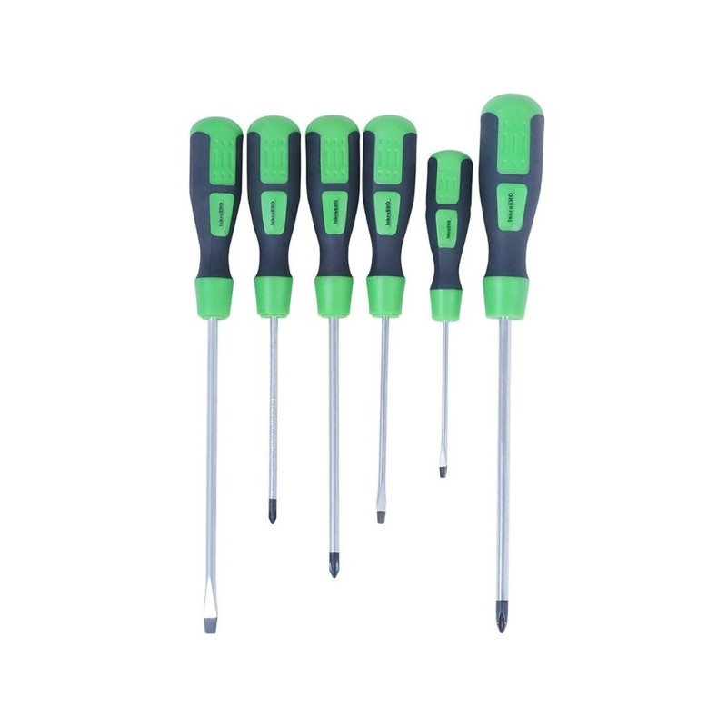 6-парчиња сет на штрафцигери HTS-6Сет од штрафцигери со магнетна глава6 шрафцигера со магнетна главатаХ. (+) крст• • 1x100mm / 1x125mm / 2x150mmSL (-) Слот• 3x75mm / 4x100mm / 5x150mm• Хром-ванадиум челик• Пакување: блистер