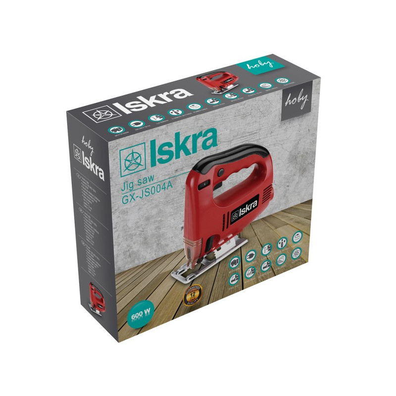 Убодна пила Iskra GX-JS004A600 W јачинапромена на брзина3000 rpm во празен одПодесувачки агол на сечење до 45 степени1,8 m кабел2 kg тежина2 година гаранција