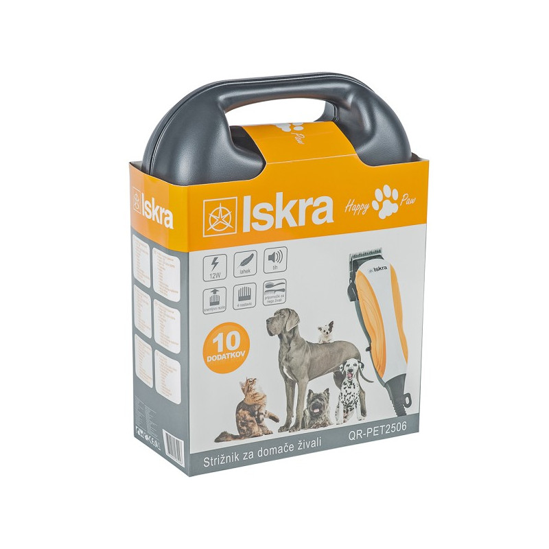 Во топлите денови, олеснете му на вашето милениче со потскратување на влакната од крзното.Оваа машинка за шишање, и потстрижување, овозможува работа во тивок режим, за да не го вознемирува миленичето.Сечивата се од хигиенски не’рѓосувачки челик, кој не ја иритираат кожата, и го отсекува влакното со претцизност и острина.Има 4 додатни чешли со различна големина, наменети за секој тип на крзно со различна должина.Доаѓа во куфер од полу-тврда пластика во кој се складира, и повеќе додатоци.Моќност и напон – 12W , 220-240 V ~ 50 HzЛесна и тивка4 Додатни чешлиДодатоци – ножици, самочистечка четка, чешел за порамнување, турпија за ноктиДодатоци за оддржување – Пластичен куфер, масло за сечива, четка за чистење сечива, заштитник на сечиваДостапно во сина, зелена и портокалова боја2 година гаранција