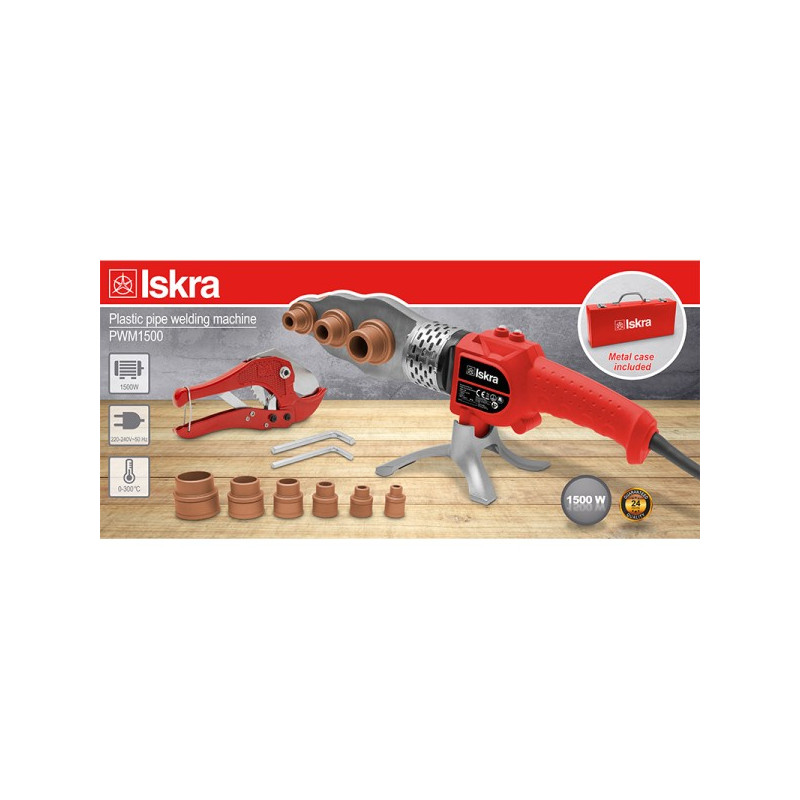 • Заварувач на пластични цевки• Напон: 220-240V~50Hz• Моќност: 1500W• Температура на заварување: 0-300 °C• Заштита од прегревање• Индикатор за вклучување• Индикатор за температура• Додатоци:- 6 × грејни тела (мм): Ø20 / Ø25 / Ø32 / Ø40 / Ø50 / Ø63- 1 × ножици за пластични цевки- 1 × алуминиумски држач- 3 × завртка- 2 × инбус клуч- вклучена метална кутија